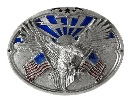 Pewter Belt Buckle - Eagle Carrying Flags - Pewter Belt Buckle Review