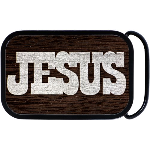 Real Wood Silver Jesus Belt Buckle Feature